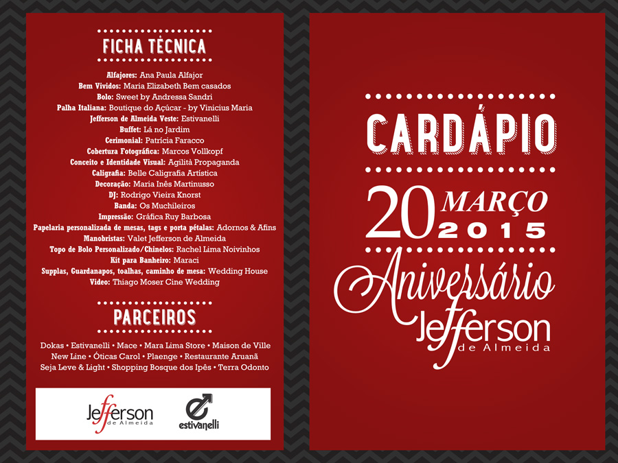 Comunicação visual de todas as peças impressas do tradicional Aniversário do Colunista Jefferson de Almeida.