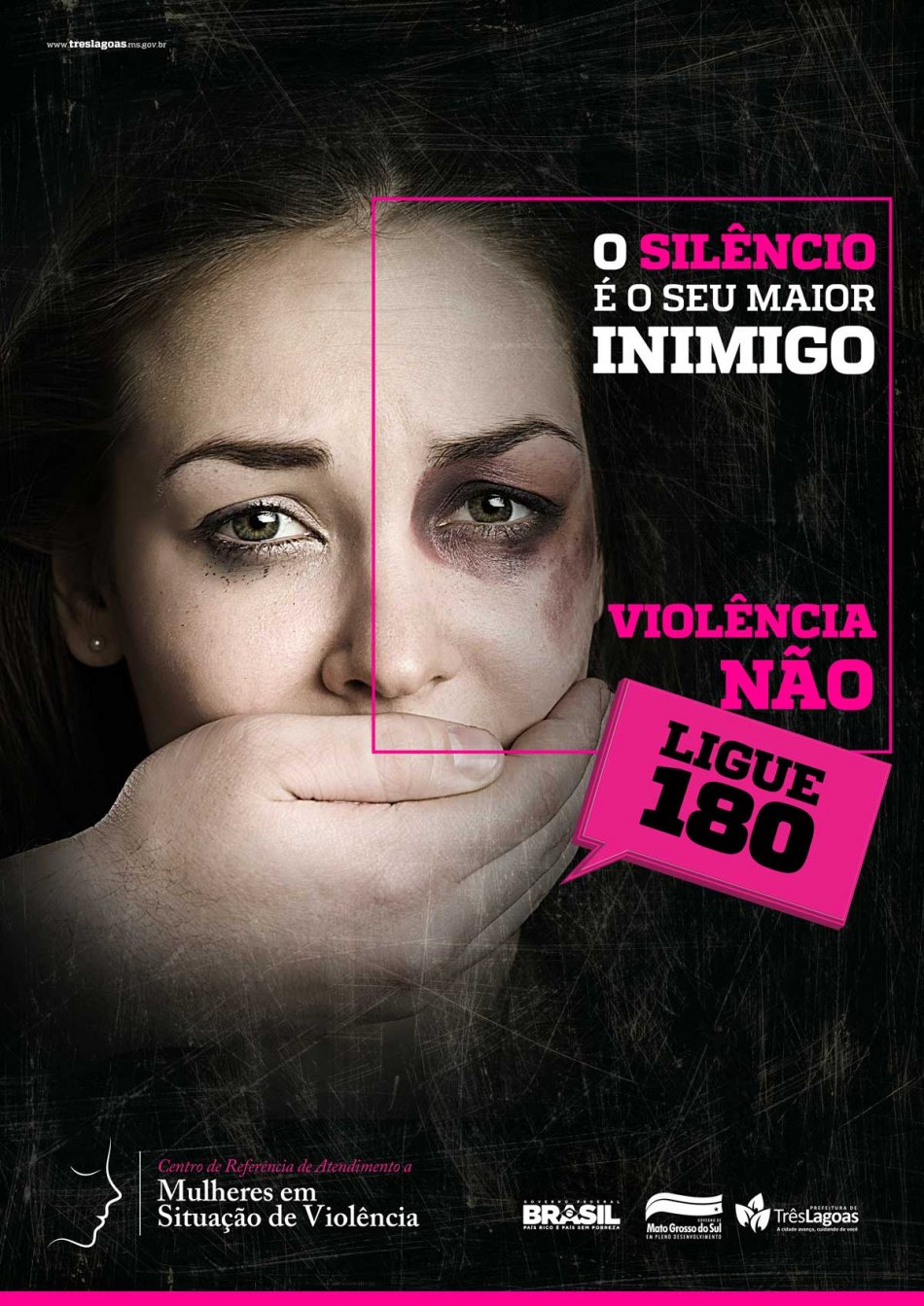 Material criado para promover ação do disk denúncia do Centro de Atendimento a Mulher em Situações de Violência de Três Lagos.